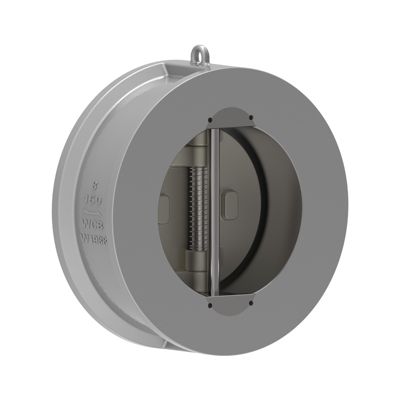 Ang butterfly plate ng soft seal dual plate check valve ay dalawang kalahating bilog, na may spring-loaded na disc na nakasuspinde sa gitnang vertical pin.